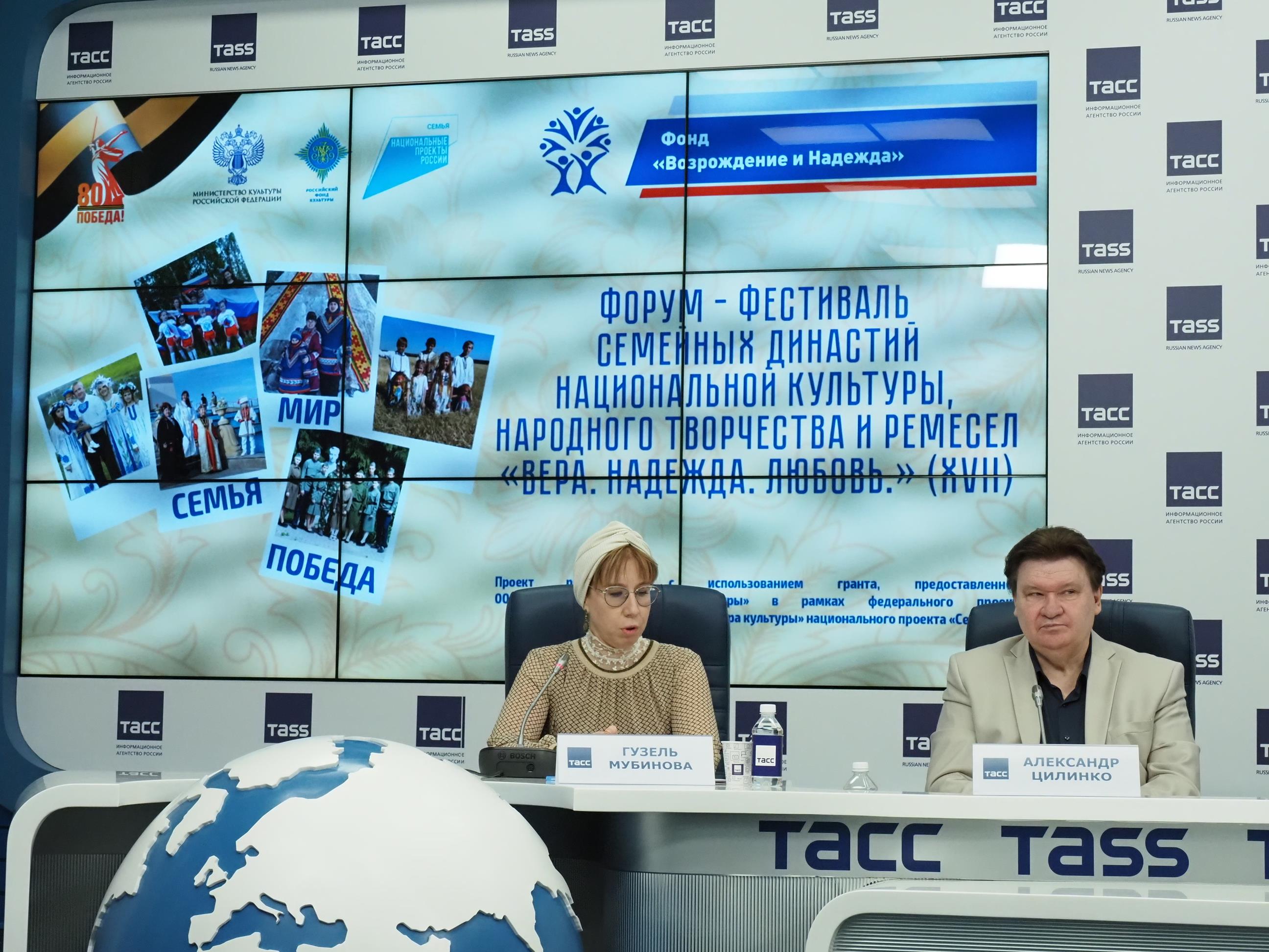 9 ОКТЯБРЯ В ПРЕСС-ЦЕНТРЕ ТАСС состоялась двухчасовая пресс-конференция посвещенная ПРОВЕДЕНИЮ Семнадцатого Форума-Фестиваля семейных династий, национальной культуры, народного творчества и ремесел «Вера. Надежда. Любовь», который традиционно будет проводится 24-27 октября в историческом городе СУЗДАЛЕ Владимирской области. Форум-Фестиваль проводится в рамках федерального проекта «Семейные ценности и инфраструктура культуры» национального проекта «Семья».
